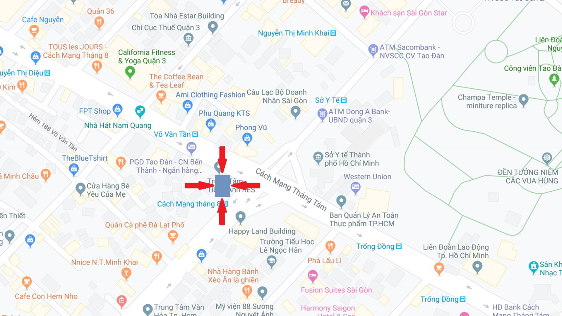 Shop thời trang, Trạm xăng, Sân vận động, Bưu cục, Trung tâm điện máy, Khách sạn, Bến xe, Ga tàu, Cảng hàng không, Trung tâm hành chính